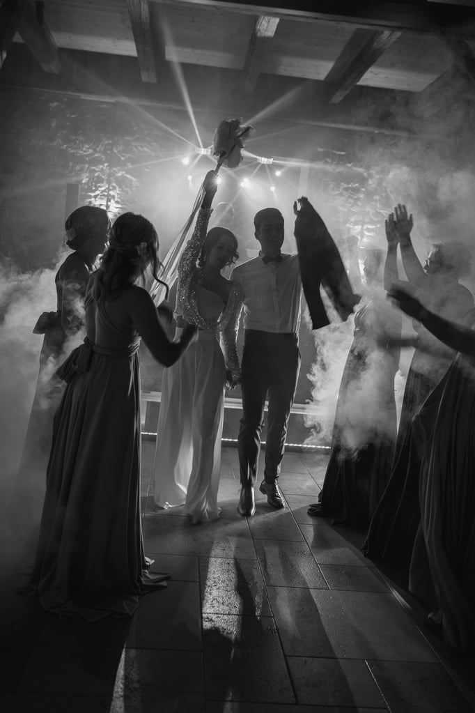 Schnell in das Partyoutfit geschlüpft und das Make-up überprüft - schon sorgte Hochzeit-DJ JulesTonic nochmal ordentlich für Stimmung und heizte den Gästen mit den neuesten Beats und Vibes